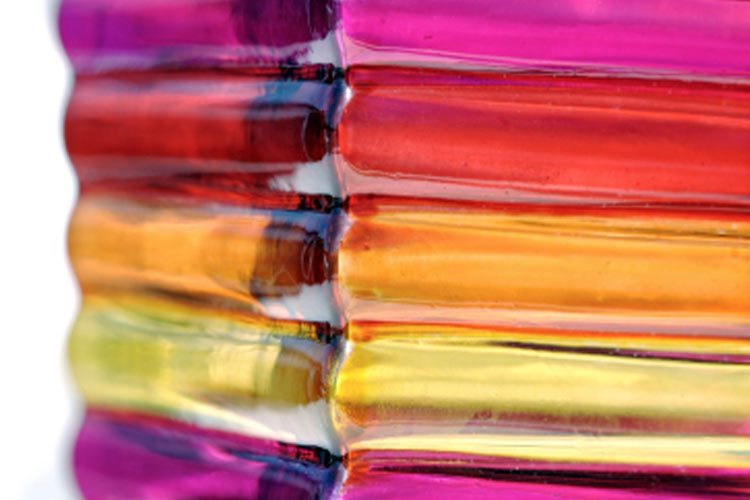 Farbigkeit kombiniert mit der Tranparenz von Glas.